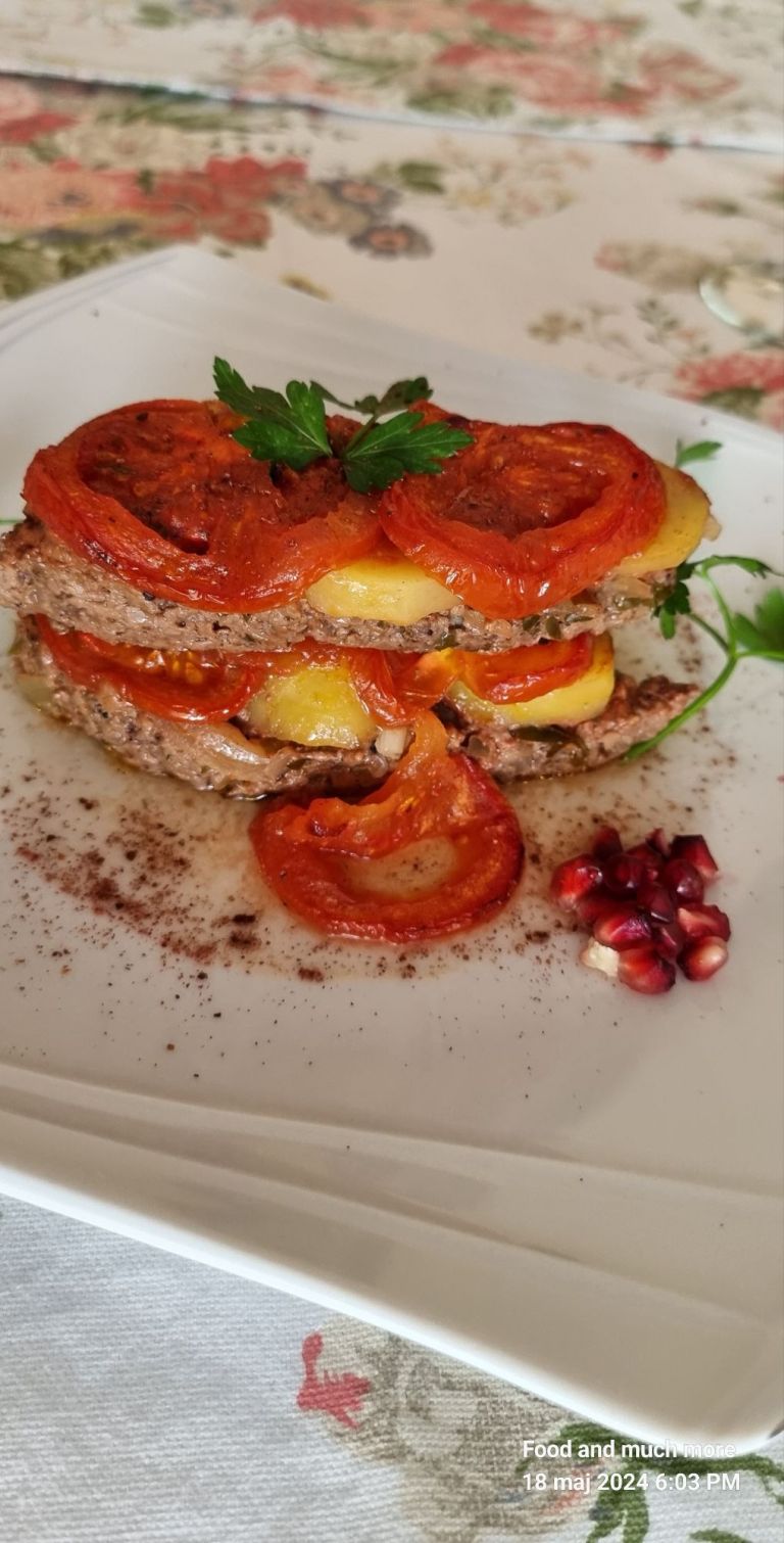 Kafta bel Sanieh är en Libanesisk köttfärsrätt med potatis och tomater samt kryddor som bakas i ugnen Ingredienser 4 persoer