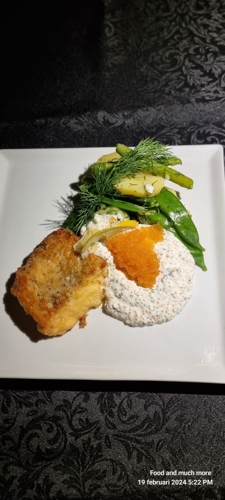 Västerbottenslax med ljummen potatissallad och romsås