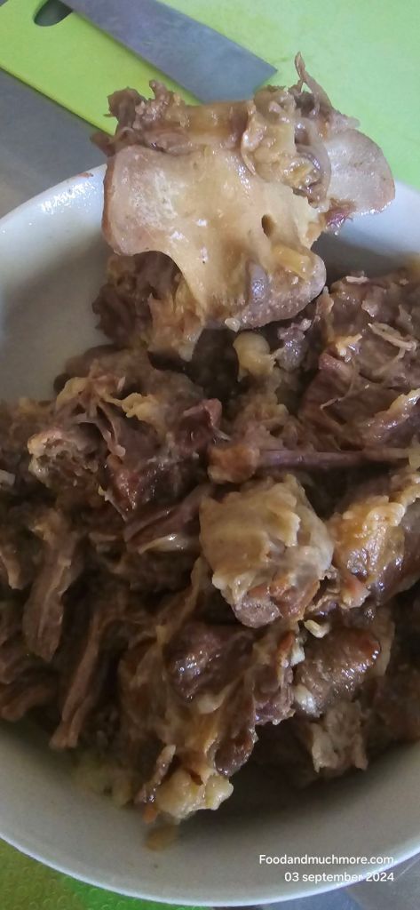 2 Låt koka 2-3 timmar tills köttet är riktigt mjukt. Fyll på med mer vatten när det kokar bort och se till att skumma av ofta.