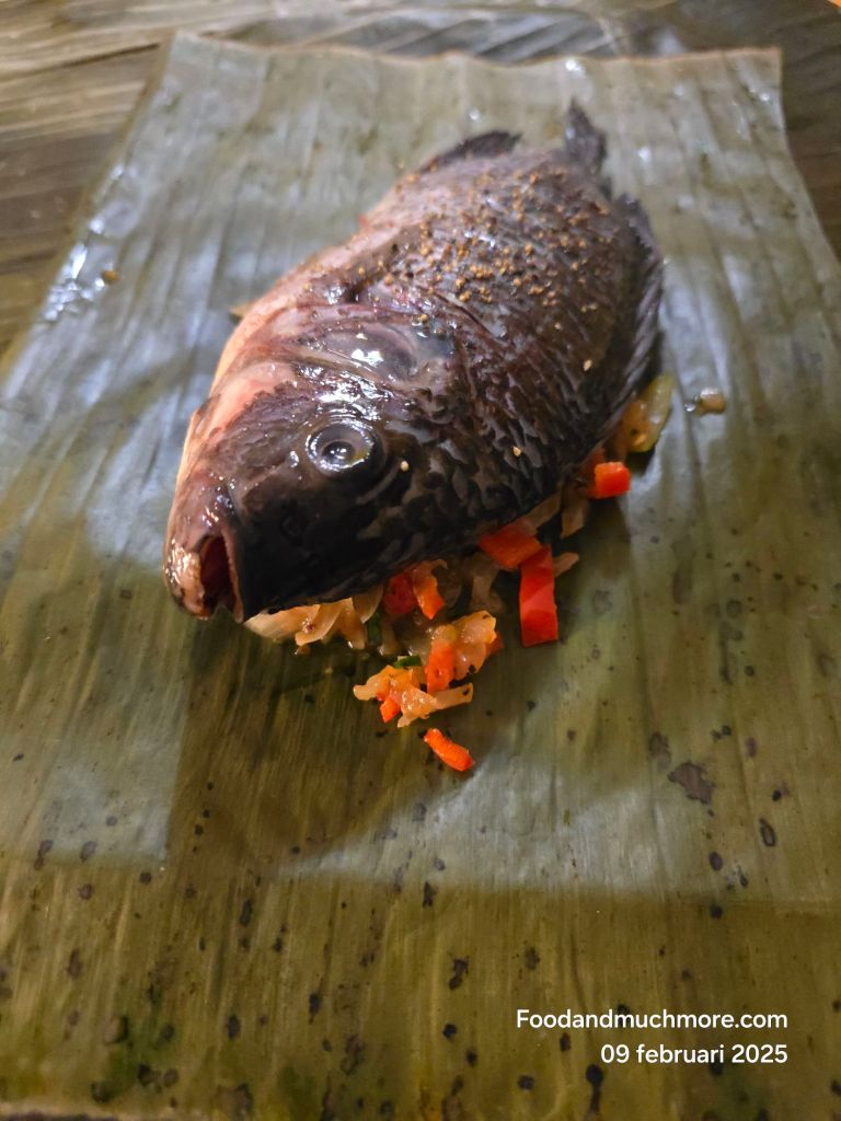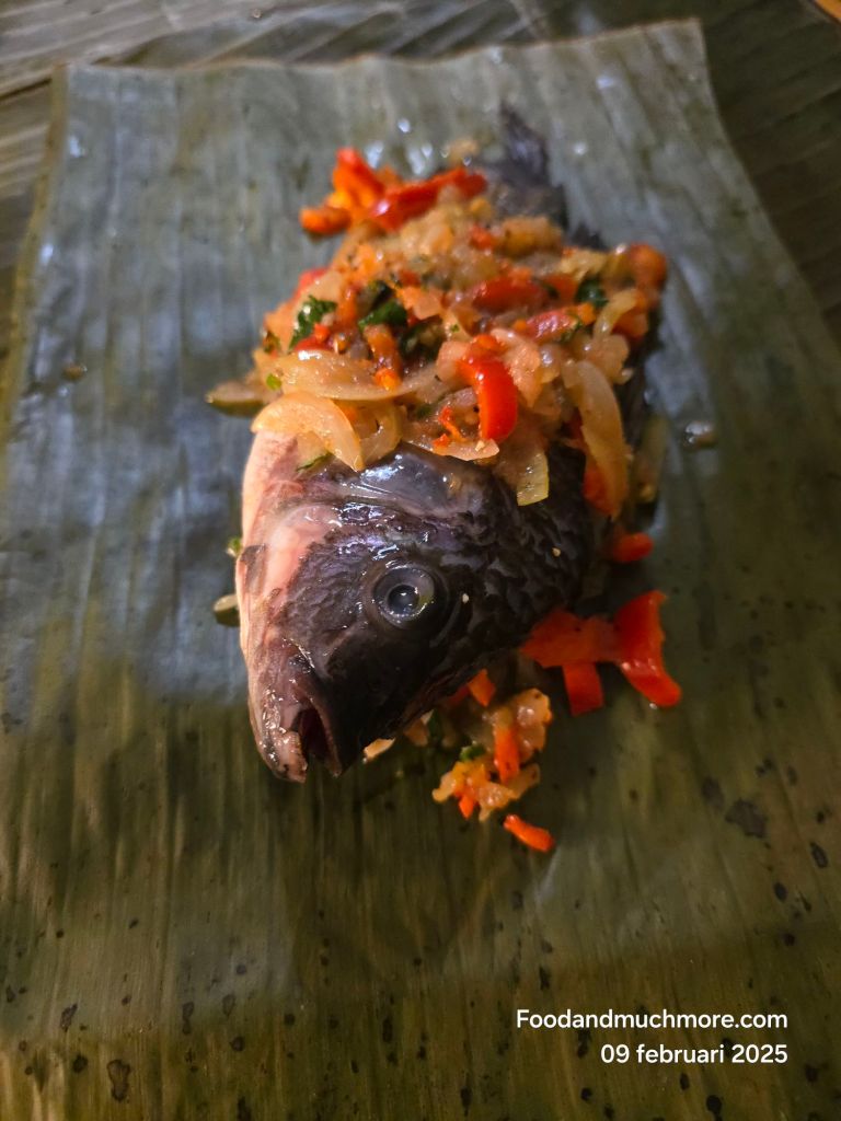 Efter att fisken har fyllts, lindas den in i stora bananblad. Dessa blad skyddar fisken under grillningen och hjälper till att bevara dess saftighet samtidigt som de ger en subtil, jordig arom. När fisken tillagas på grillen eller över öppen eld blir köttet mört och får en delikat rökighet, medan sofriton smälter samman med fisken och förstärker smakerna.