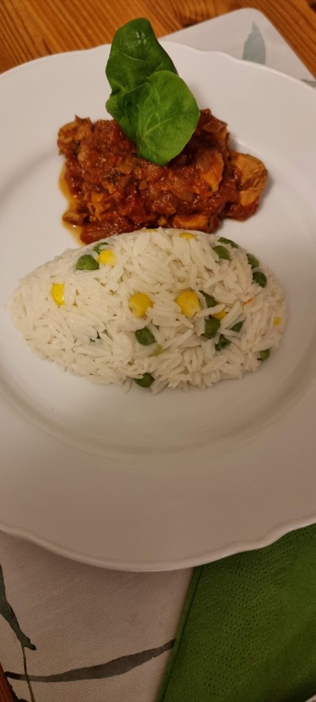 4. Add the coarsely chopped coriander and serve the stew with rice.