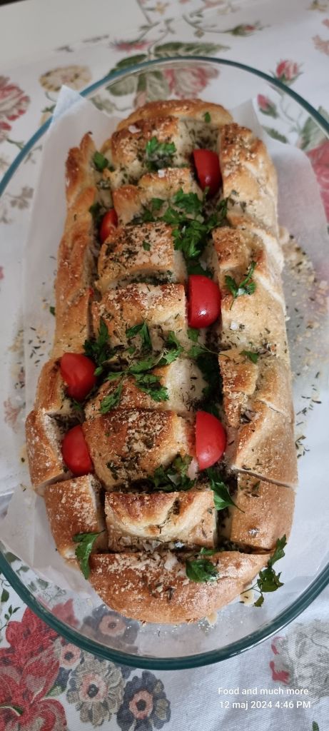 Fyll brödet med en massa ost och riv lite grann på toppen när det är färdiggräddat. Ju mer vitlökssmör man