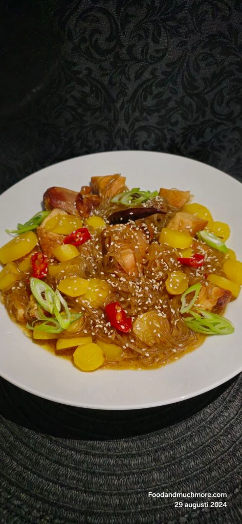 Andong jjimdak är en koreansk maträtt. Bräserad kyckling med nudlar. Rätten har en perfekt balans mellan sött, hetta och sesam.