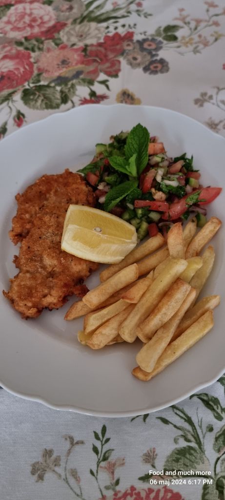 Schnitzel kom till Israel med de tyska judarna. Traditionellt görs den på kalv, men tillgången på nöttkött var dålig i