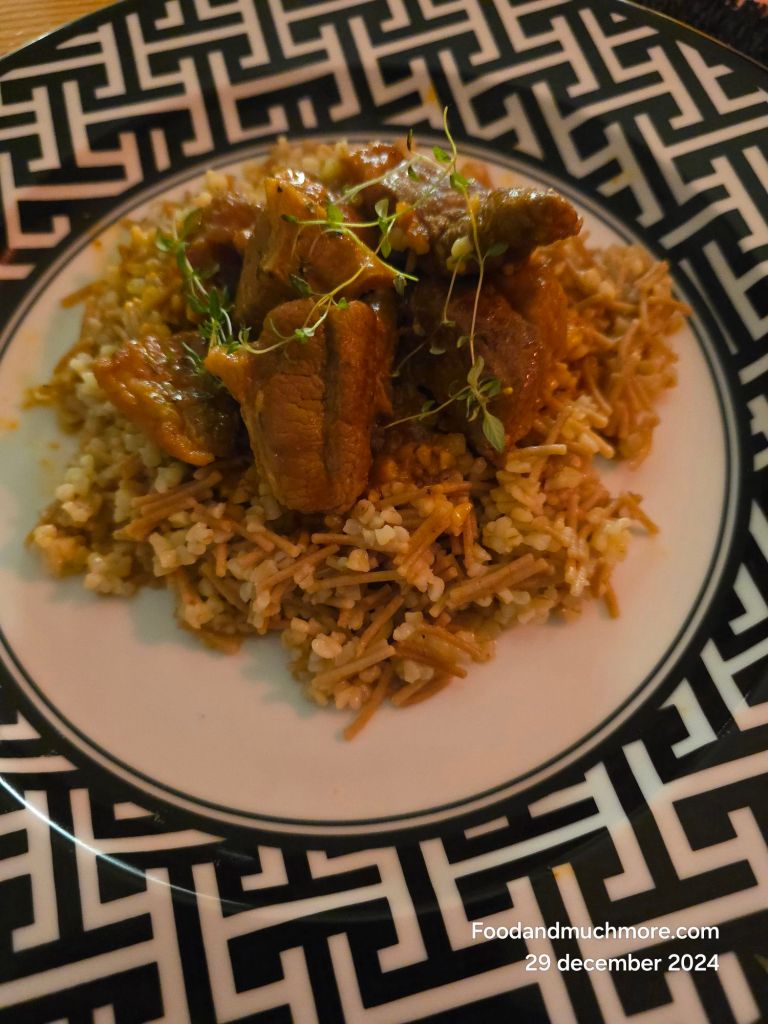 Aloo Gosht är en traditionell pakistansk lammgryta som förenar saftigt lammkött med mjuka potatisbitar i en kryddig och aromatisk sås.