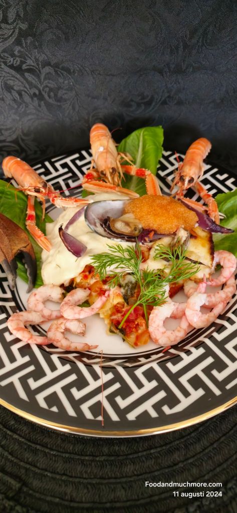 Då det blev massa skaldjur kvar efter skaldjursfatet igår så blir det en skaldjurslasagne idag till middag. Denna rätt passar