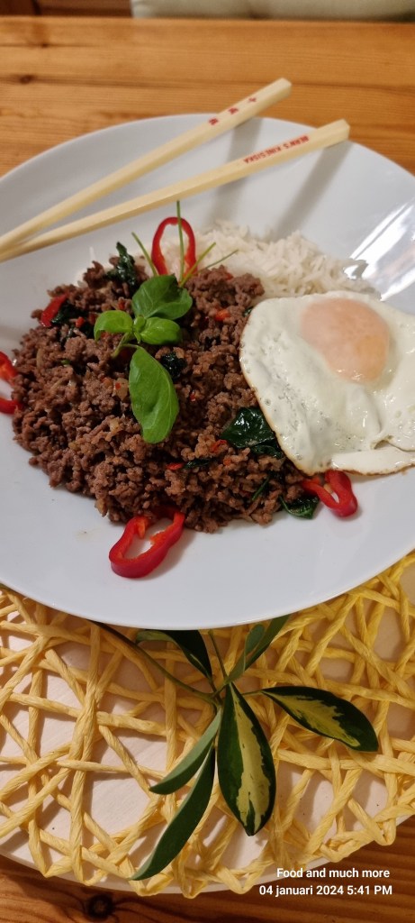 Pad Kra Pao, en ikonisk thailändsk rätt som övertygar med sin enkla elegans och smakrika komplexitet, har sitt ursprung i